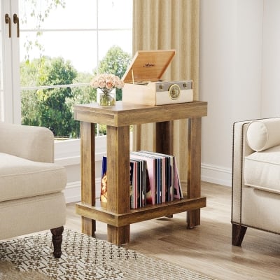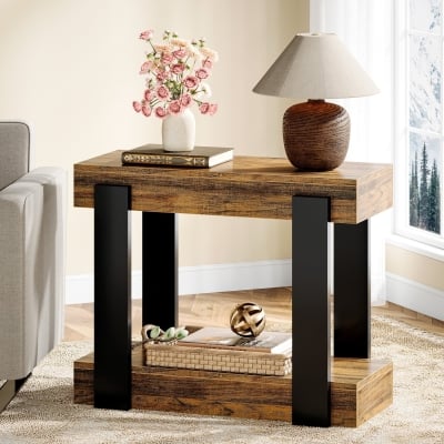 2-Tier End Table, Wood Farmhouse Side Table for Living Room