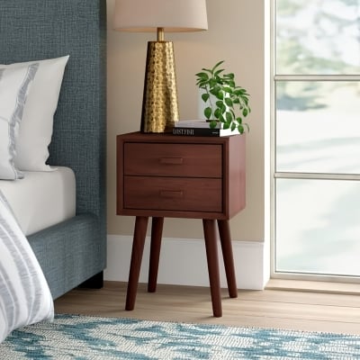 Casper mid-century modern 2-drawer nightstand with metal legs