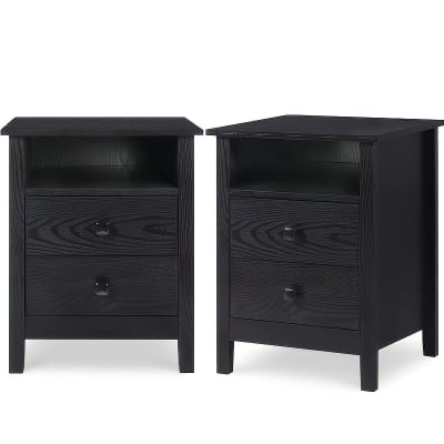 2-Drawer Nightstands, Set Of 2, Farmhouse Style Bedroom Furniture With Wooden Night Stand, Bedside Table, Drawers, Black Wood Grain