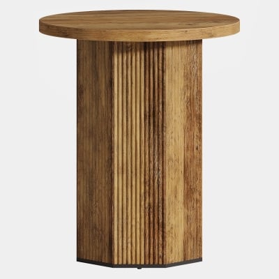 Round End Table, Wooden Couch Side Table with Octagonal Base
