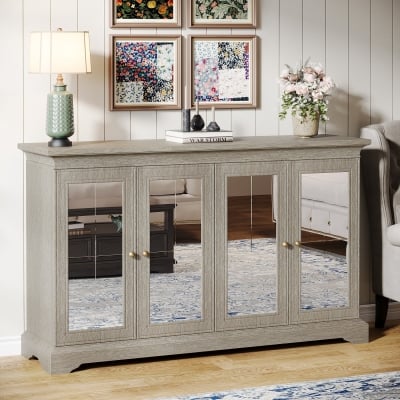 140 cm Sideboard Buffet, Wood Mirrored Buffet Cabinet with Adjustable Shelves