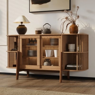 140 cm Sideboard Buffet, Storage Cabinet Credenzas with Adjustable Shelves