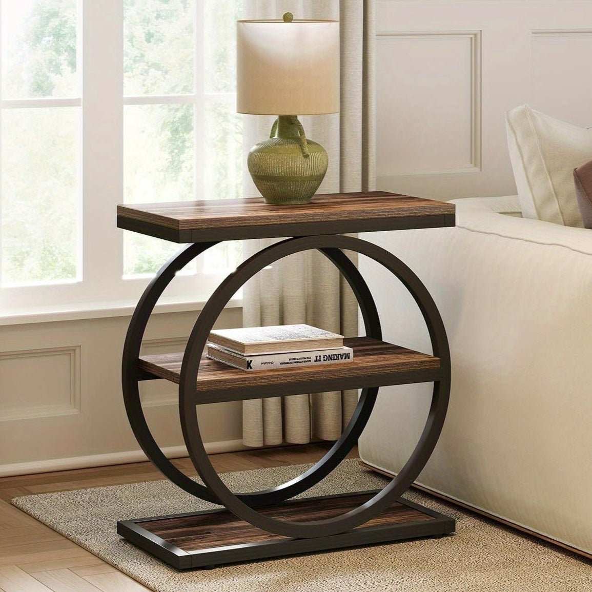 Industrial End Table, 3-Tier Sofa Side Table Bedside Table