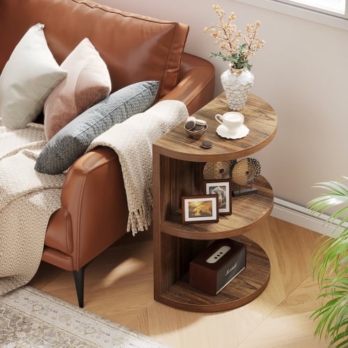 C-Shaped End Table, Wood Side Table for Couch Sofa